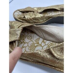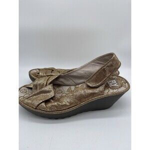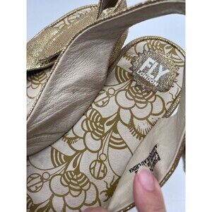 Fly London Yakin Wedge Sandals Gold Glitter Leather Peep Toe Shoes Size: 41 / 10