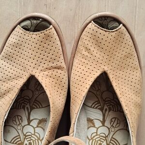 Fly London Yala Perforated Wedge Sandal Platform Beige Peep Toe Ankle Strap