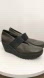 This pre-owned Fly London women's Mary Jane Leather wedge shoes in olive green grey size 38 EU Features soft genuine leather upper, Supportive cushioned footbed, and a Comfortable platform wedge sole for all-day wear. Elastic Mary Jane strap for easy slip-on fit. Lightweight yet durable rubber outsole with traction. Rounded toe silhouette for comfort and versatility. Fits the Modern Comfort, Euro Chic, Minimalist, and Casual Styles. Wear at/for work, travel, city walking, casual office days, fall and spring outfits, everyday comfort wear.