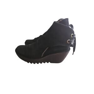 Fly London Yama Ankle Boots Sz 39 Wedge Bootie Suede Platform Lace Back sz 8 8.5