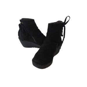 Fly London Yama Back Suede Wedge Ankle Lace Up Booties Size 37