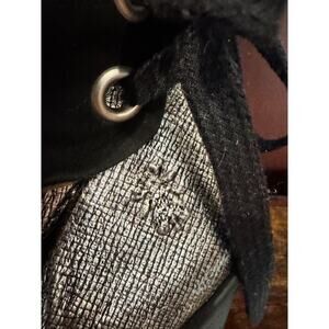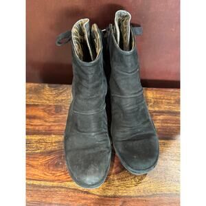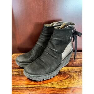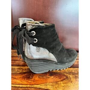 Fly London Yama Black Silver Suede Ankle Bootie - Sz 39