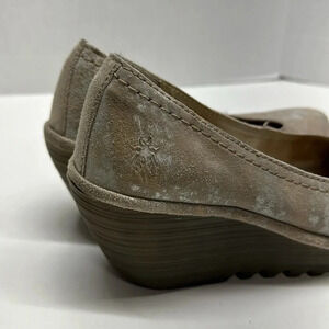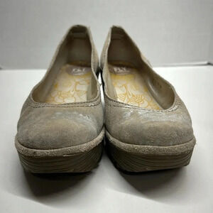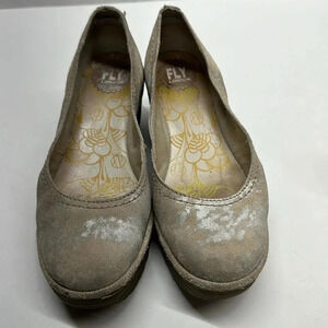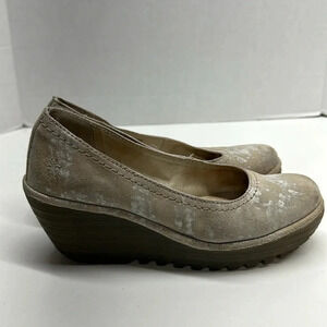 Fly London Yaz Wedges Pump Heeled Shoes Heels Tan Silver Metallic Size 6.5 - 7
