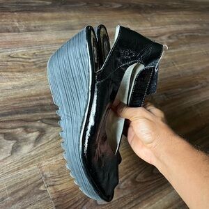 Pre owned in excellent condition Fly London patent leather wedge