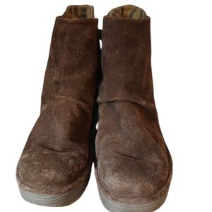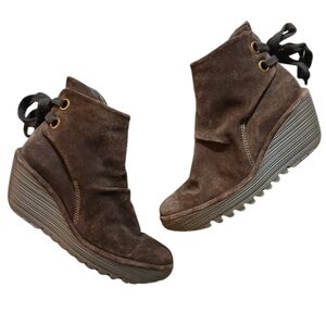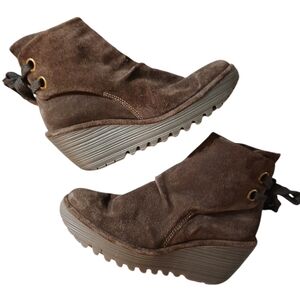 Fly London Yebi Brown Suede Slip on Booties Wedge Ankle Boots Size 8