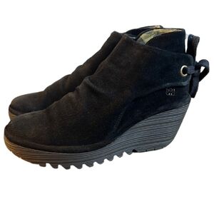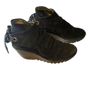 Fly London Yebi black suede wedge ties in back size 39 us 8-8.5 black