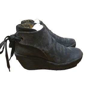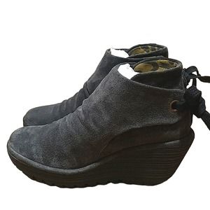 Fly London Yebi gray suede wedge ankle bootie sz 39/ 8-8.5 us