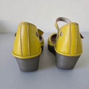 Fly London Yellow Leather Mary Jane Wedge Shoes Women Size 41 Comfort Cutout Design