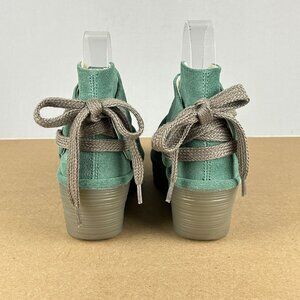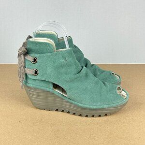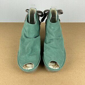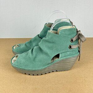 Fly London Yema Suede Wedge Booties Womens 6.5/7 EU 37 Green Gray Lace Detail