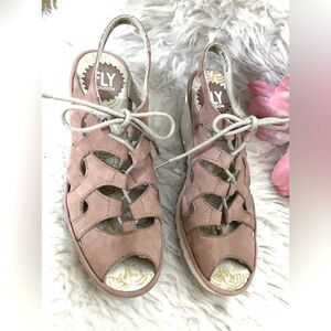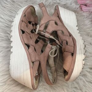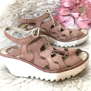 Fly London Yexa 916 Tan Ghillie Lace Up Wedge Sandals Size 37