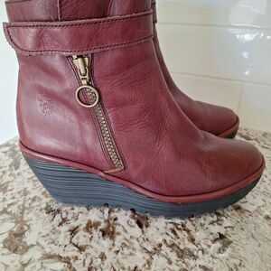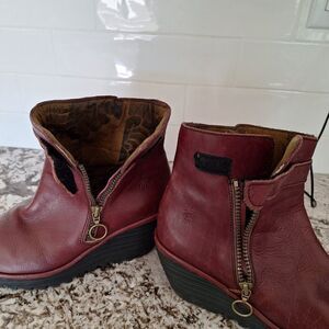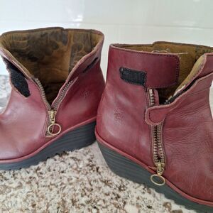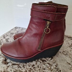Fly London Yip Ankle Boots Women 39/ 9 Booties Wedge Side Zipper