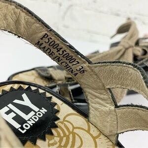 Fly London Yito Patent Black Leather Lace Up Wedge Sandals 36