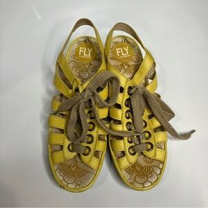 Fly London Yito wedge lace up sandals yellow leather size 40