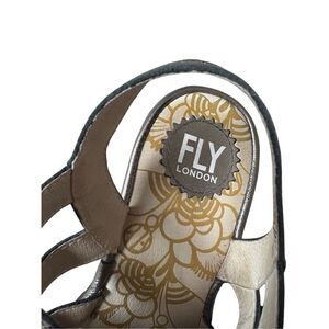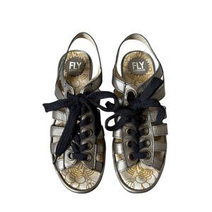 Fly London Yito Gold Pewter Leather Gladiator Platform Wedge Sandal Womens EU 40