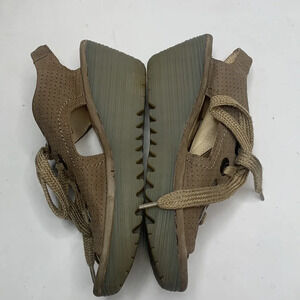 Fly London Yiva Perforated Taupe Lace Up Wedge Sandals S-055 Sz 40 EU / 9-9.5 US