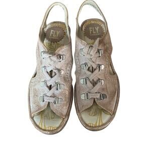 Fly London Ylfa Gold Metallic Leather Lace Up Wedge Shoes size 35 US 5