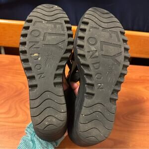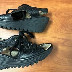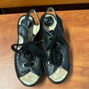 Fly London Ylva Lace Up Wedge Sandals Womens 38 7-7.5 Black Summer Open Toe