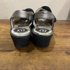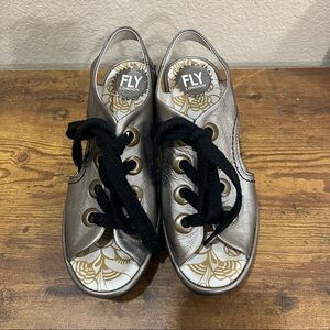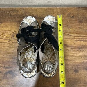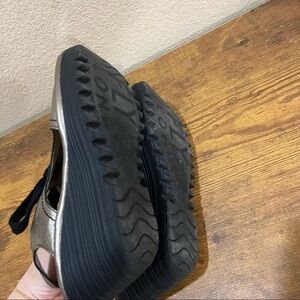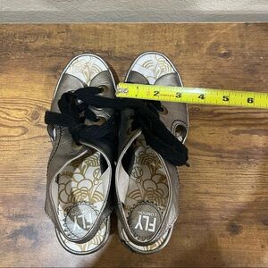 Fly London Ylva Wedge Lace-Up Mettalic Leather Sandal Shoe 38 7-7.5 Boho Grunge