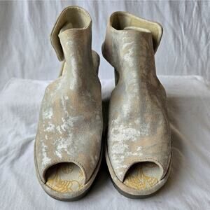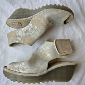 Fly London Yone Womens Suede Wedge Peep Toe Sandals Rose/Silver Size 39/US 8-8.5
