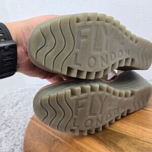 Fly London Ypul Taupe Perforated Peep Toe Ankle Strap Wedge Sandals Womens 39