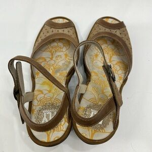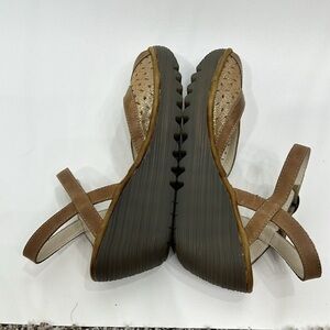 Fly London Yumo leather wedge sandals size 41. Brown and gold.