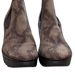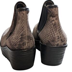 Fly London platform wedge pull on ankle boot yat snake print brown suede size 39