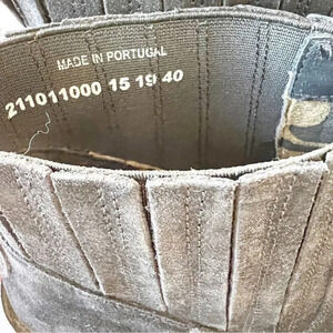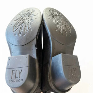 Fly London black suede ankle boots women’s size EU 40. Subtle metallic to the leather. 5” shaft, 2” heel. I love this brand. Preowned, minimal overall wear.