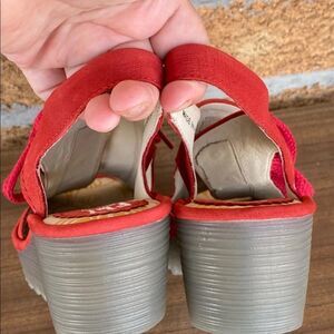 Fly London Ylfa Scarlet Red Leather Lace up Comfort Wedge Sandals size 8 new without a box