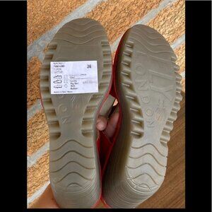 Fly London Ylfa Scarlet Red Leather Lace up Comfort Wedge Sandals size 8 new without a box