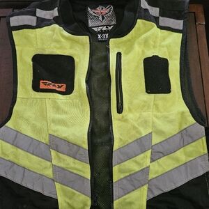 Fly Racing high-visibility vest with reflective accents. Features bright yellow and black design.
