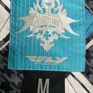 Fly Racing Hooded Jacket. In excellent condition. No rips or holes. A little make up soils on top insides. 2 outside zip pockets and 2 inside zip pockets. Adjustable waist and Velcro closers on cuffs. Size medium. Measurements are: armpit to armpit 22” and length 28”. Non Smoker