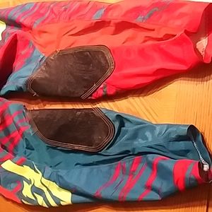 Pants are in great shape. No issues to report on the pants. Stretchy material throughout to fit excellent when in riding position. Good ventilation on back of legs and on knees. Leather is excellent. Buckles, straps, and zipper are perfect.