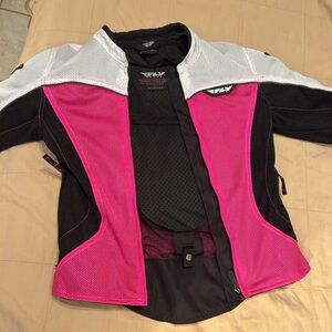 Fly Racing Flux Air Mesh Jacket for women This is sexy and safe for riders. It is hot pink, white and black. This specific model is designed for warm weather riding, featuring a full mesh construction to provide maximum airflow and keep the rider cool. It has only been worn once and in perfect condition.
