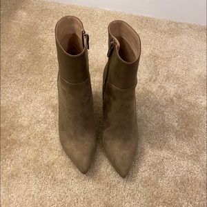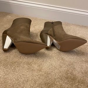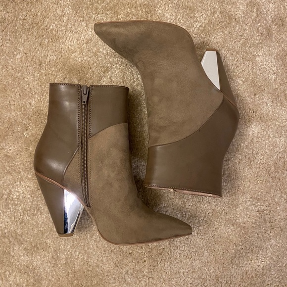 Two toned taupe ankle boots with silver heels. These are suede and leather and very hard to list.