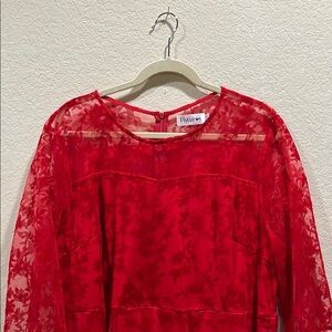 Stunning red dress with floral patterns. Perfect for any occasion.