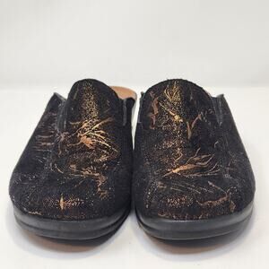 FlyFlot Women Comfort Clog Slide Anatomic Black Bronze Metallic Size 38 US 7.5