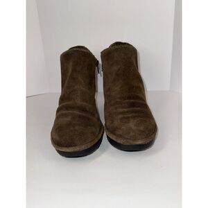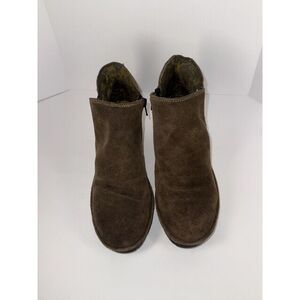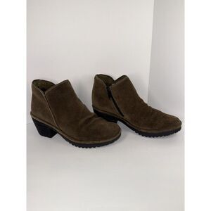Fly London Wezo Bootie Brown Leather Ankle Boot Stacked Block Heel Zip 38/7.5-8
