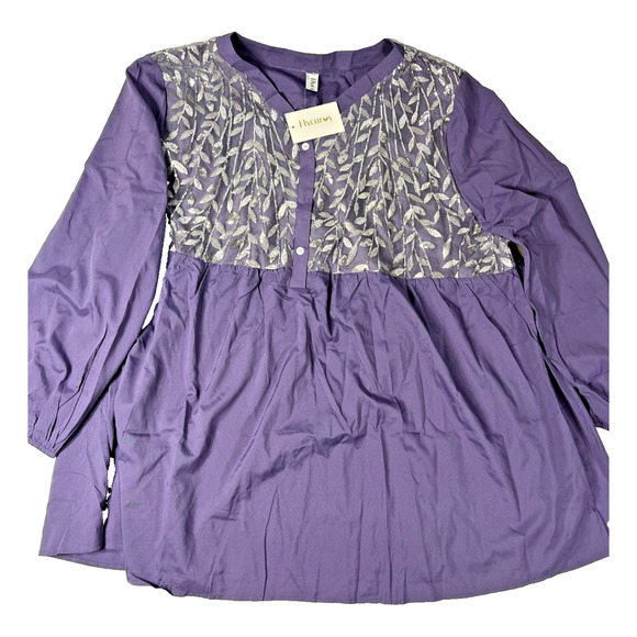 Flycurvy Women’s Purple Embroidered Button Front Blouse Top Plus Size 5XL