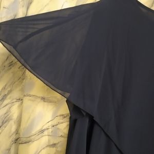 Beautiful navy blue chiffon asymmetrical batwing sleeve, fake two pieces maxi dress size 5x/28.