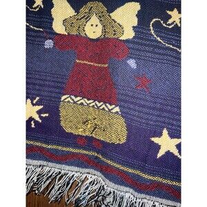 Flying Cherubs Angels Throw Blanket 100% Cotton Cottagecore Fringe Vintage
