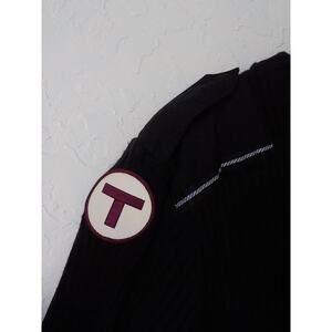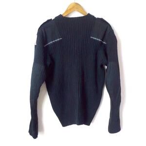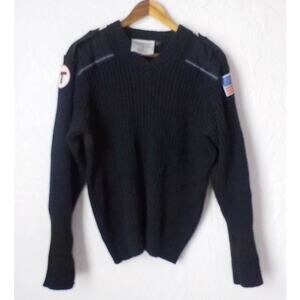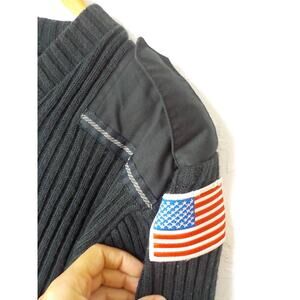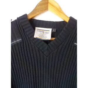 Flying Cross VNeck Sweater Black Wool Blend Ribbed Knit Men Large Patch Flag T