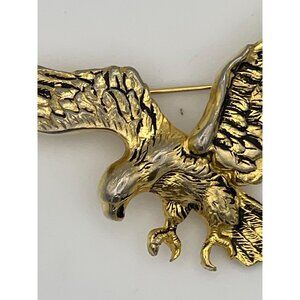 Flying Eagle Brooch Pin Antique Gold Tone Finish 2.5"
