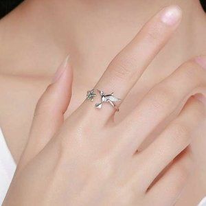 Flying Hummingbird Adjustable Sterling Silver Ring