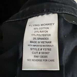 Flying Monkey button fly women's black distressed hem skinny jeans. I love that they call this style chewed hem! I also love that the button fly is not hidden. These are super cute and in wonderful condition. Laid flat, the Waist measures about 17 inches, and the inseam measures about 28 inches. The rise measures about 11 inches. Please check photos for details.