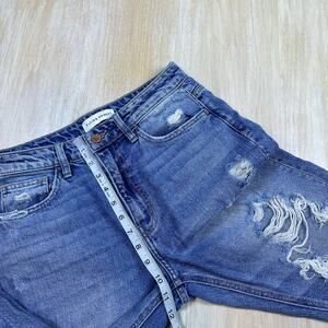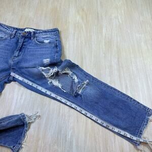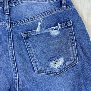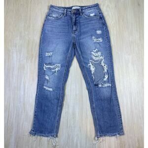 Flying Monkey Distressed Medium Wash Fray Hem Relaxed Straight Mom Jeans 26