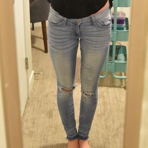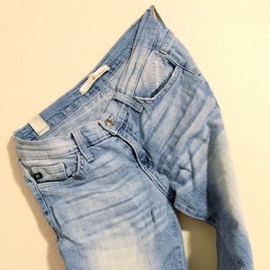 These jeans were originally purchased from The Buckle. They have casually distressing down both legs beginning at the thighs. The material is fitted yet stretchy. Pair with booties and a sweater for the perfect fall outfit! ✨✨
