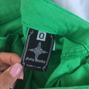 Bright green skinny jeans, perfect for the summer! Slightly stretchy so very comfortable. Size 0. Inseam is about 30 inches. Worn only a few times so in great condition. Color of jeans came out a little light in the first 2 photos.. the green color is better shown in the 3rd and 4th photos.