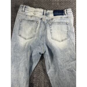 Flying Monkey High Rise Blue White Flare Stretch Jeans Women's 34 18 Festival XL