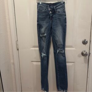 Flying Monkey High Rise Distressed Blue Jeans