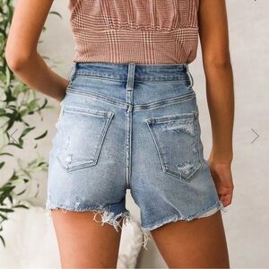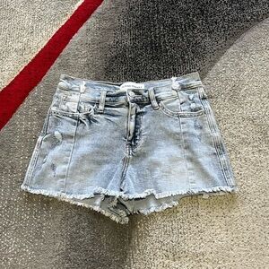 Flying Monkey High Rise Grunge Festival Distressed Light Wash Denim Shorts